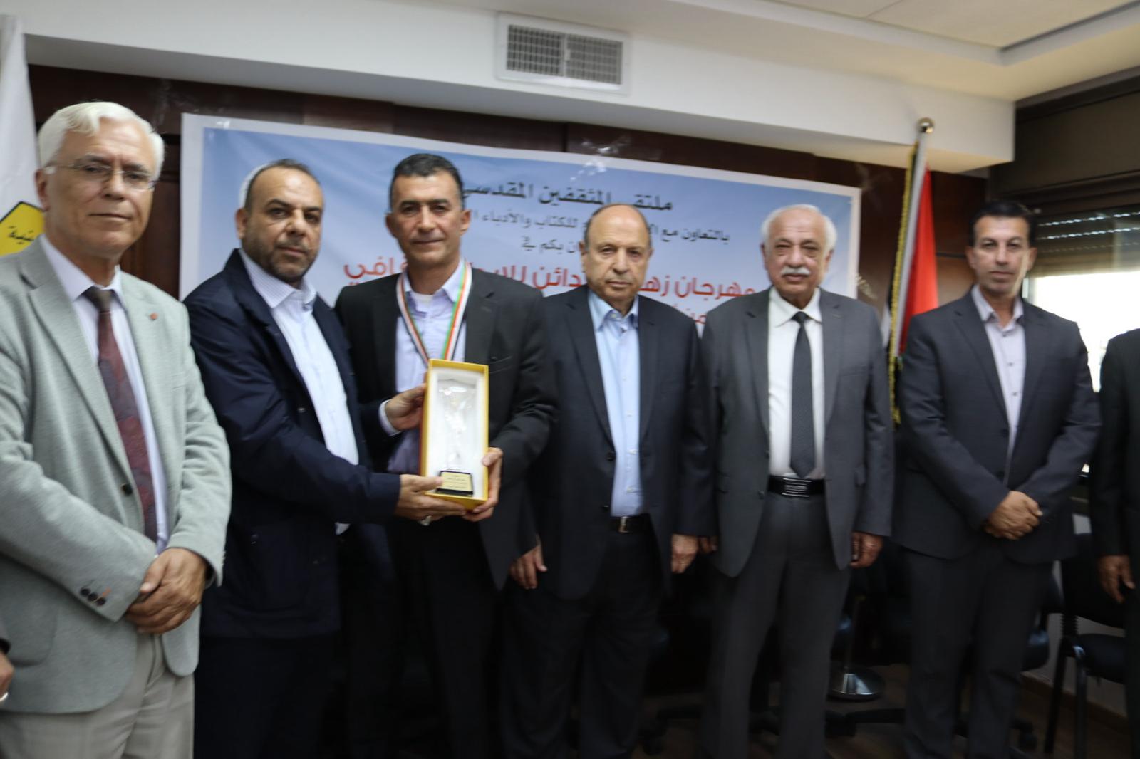 القدس ~ اقام ملتقى المثقفين المقدسي بالتعاون مع الاتحاد العام للكتاب والأدباء الفلسطيني   27  نيسان  مهرجان زهرة المدائن للابداع الثقافي من أجل القدس في مقر م ت ف في الرام بالقدس بحضور المهندس عدنان الحسيني مسؤول ملف القدس في ( م ت ف ) والشاعر مراد سوداني أمين عام اتحاد الكتاب والأدباء ورئيس الملتقى الدكتور طلال ابو عفيفة واسعد سنقرط أمين سر مجلس أمناء الملتقى ومجلس إدارة الملتقى وعدد من الكتاب والأدباء والشخصيات المقدسية . تم الإعلان عن المكرمين من فلسطين والأردن وتم تكريم المكرميم من فلسطين. وقام تلفزيون فلسطين مباشر بتغطية حفل التكريم مباشرة. والمكرمون جميعا هم: