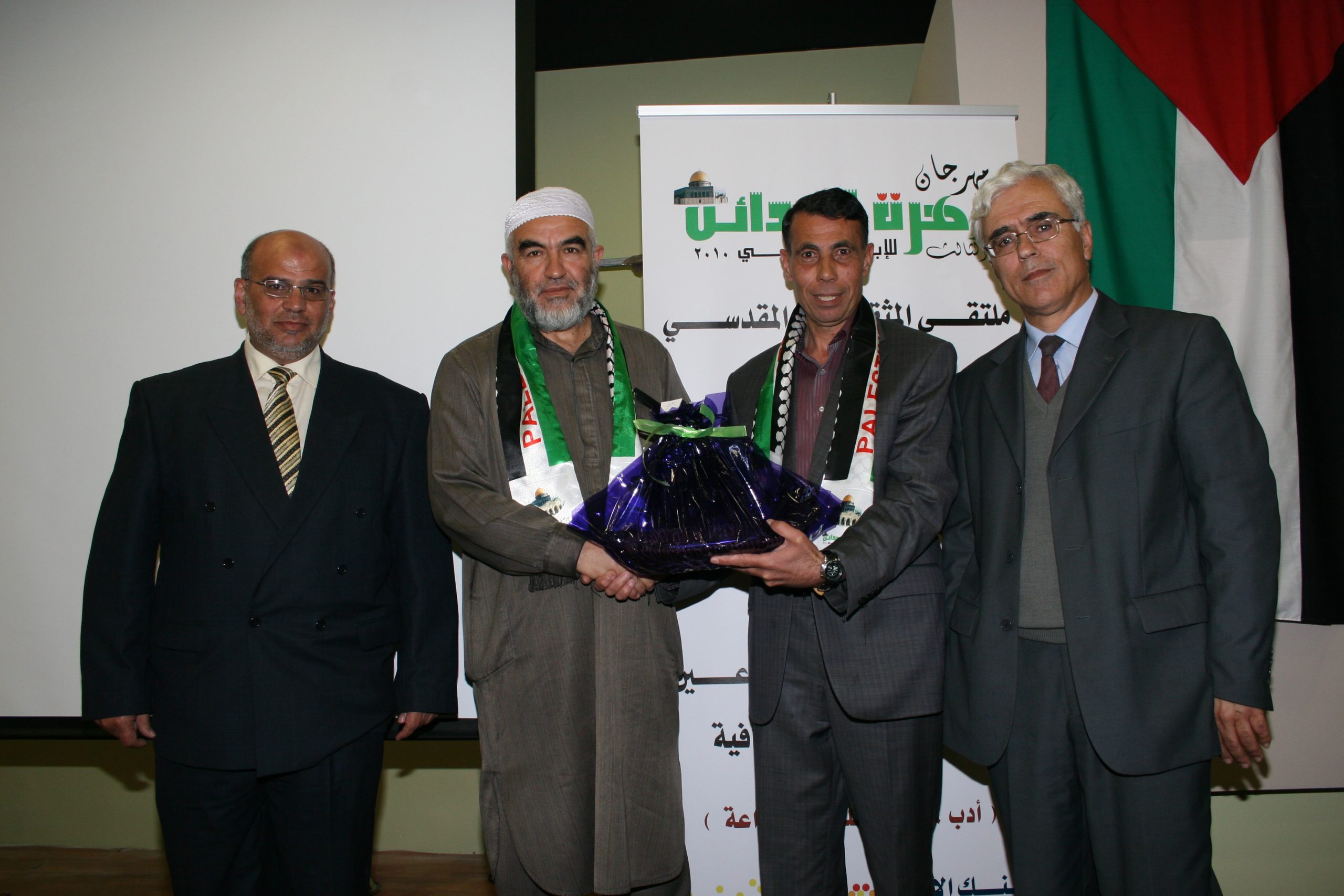 الدكتور طلال ابو عفيفة رئيس الملتقى ، عبد الله صيام نائب محافظ القدس ، موسى ابو غربية وكيل وزارة الثقافة ، حاتم عبد القادر أمين سر اللجنة القطرية لدعم القدس ، المحامي فدوى البرغوثي زوجة المناضل الاسير مروان البرغوثي ، جميل شحادة عضو اللجنة التنفيذية لمنظمة التحرير الفلسطينية ، احمد مصطفى مدير العلاقات العامة في بنك الاردن .